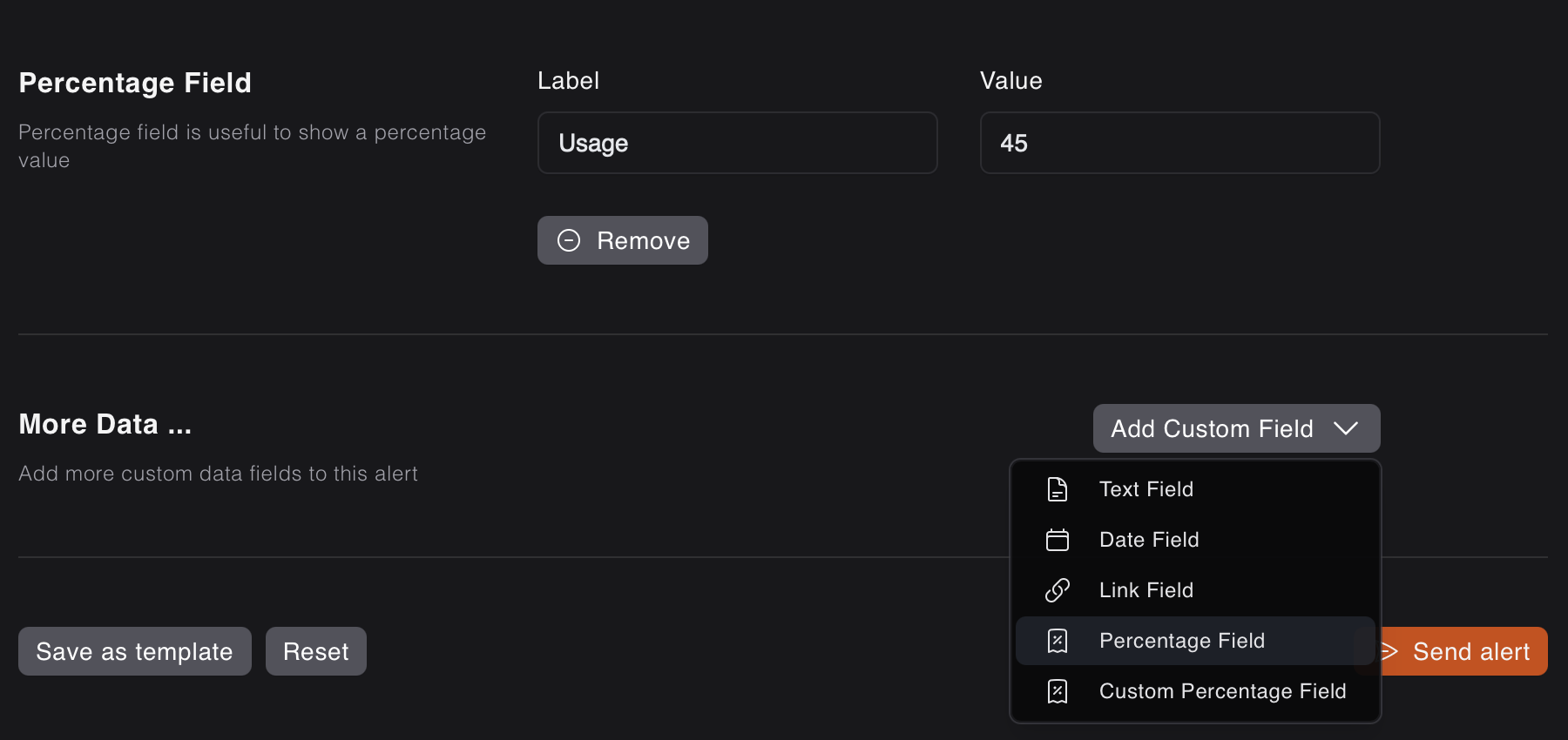 Fully customise alerts with your own fields, and visuals. Add progress bars, gauges, and key metrics to keep your team informed at a glance.