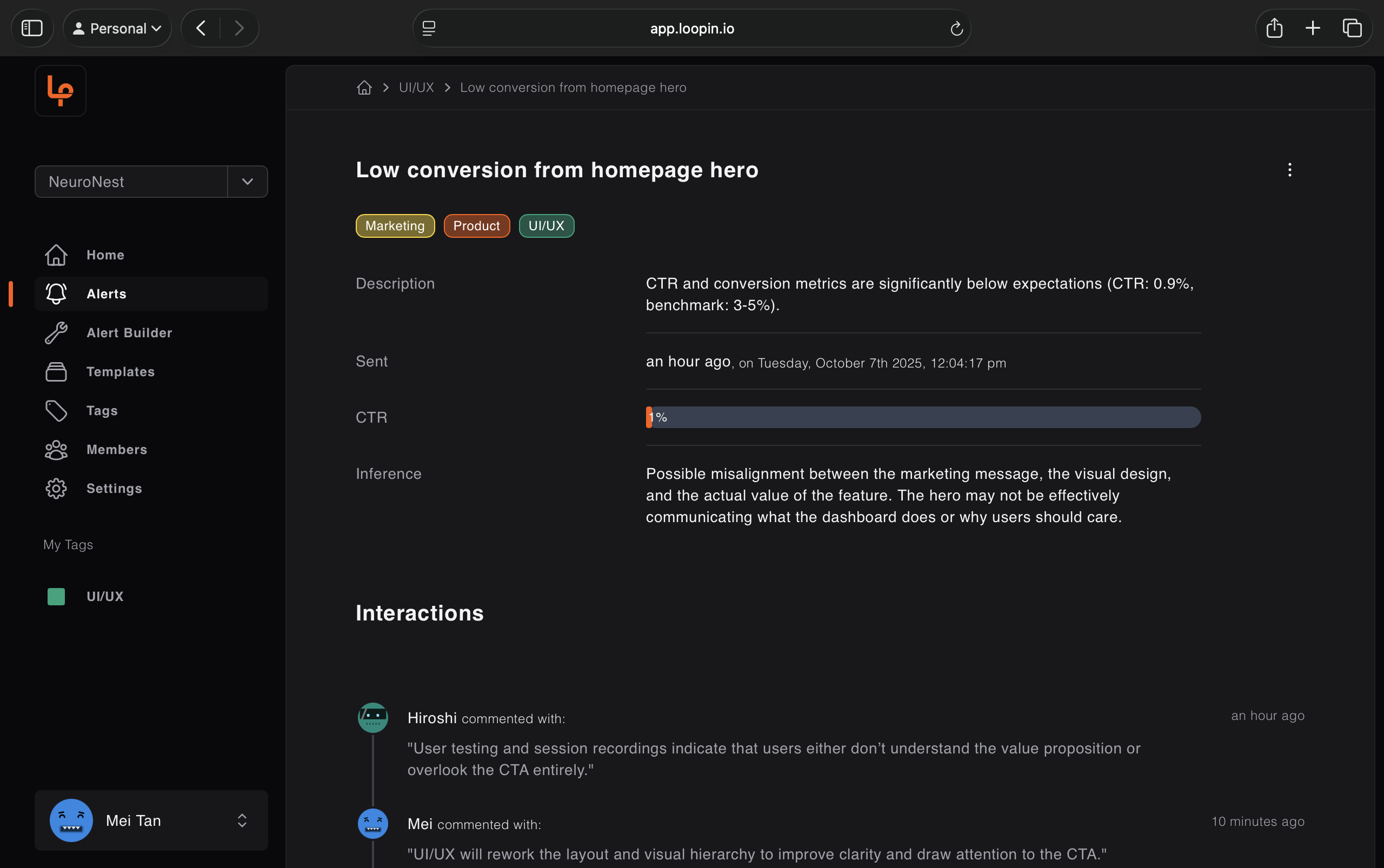 Loopin does more than just alerts. It facilitates simple communication of updates, providing the clarity needed for swift resolution.