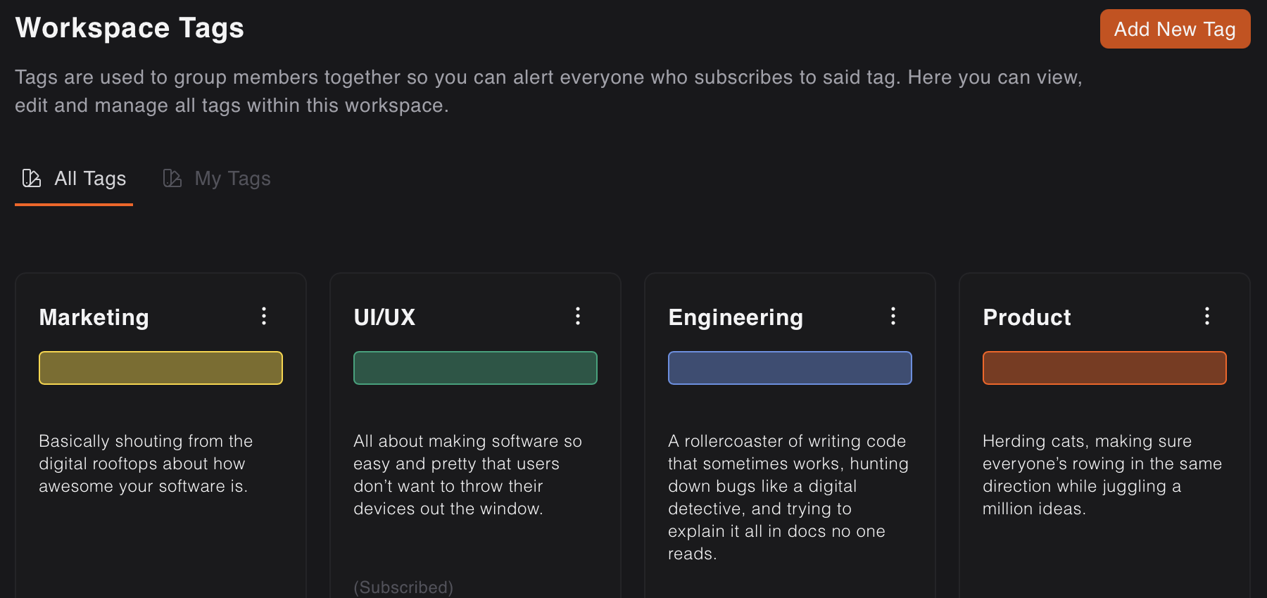 Make it yours—customise tag colours to match your branding or your team’s style. Organising your team never looked this good.